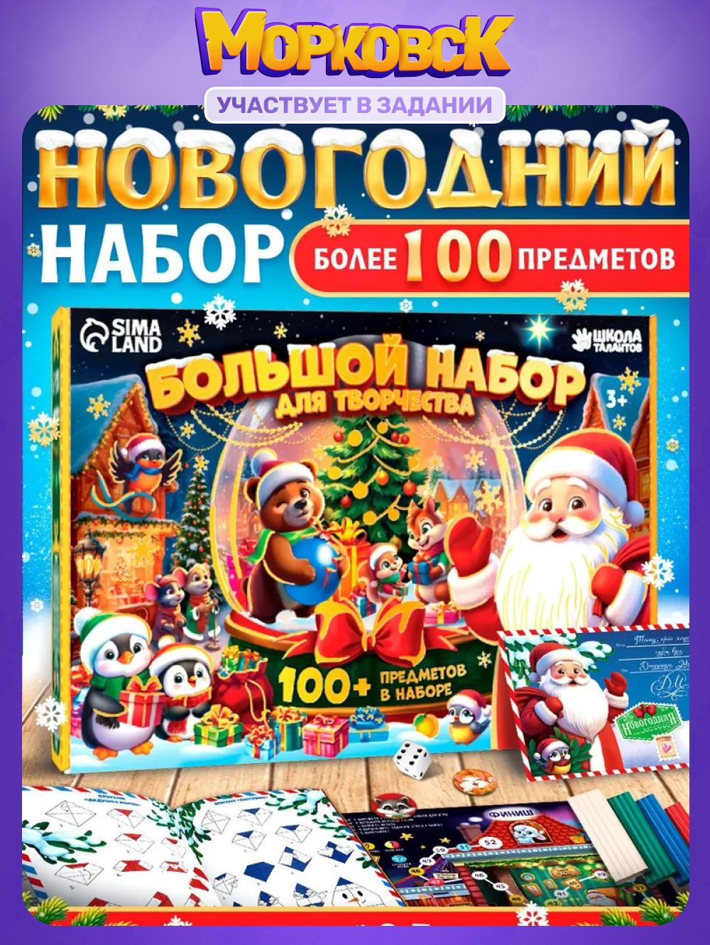 Новогодний подарок для детей 2026, "Большой подарочный набор", 100+ предметов, новогодний набор для творчества