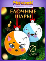 Елочные шары под раскраску, "Веселые друзья", набор 2 штуки, диаметр 5,5 см, новогодний подарок для детей