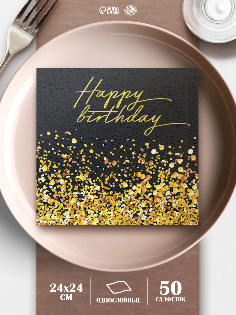 Салфетки бумажные однослойные "С Днем Рождения" / 24х24 см / Набор 50 шт.