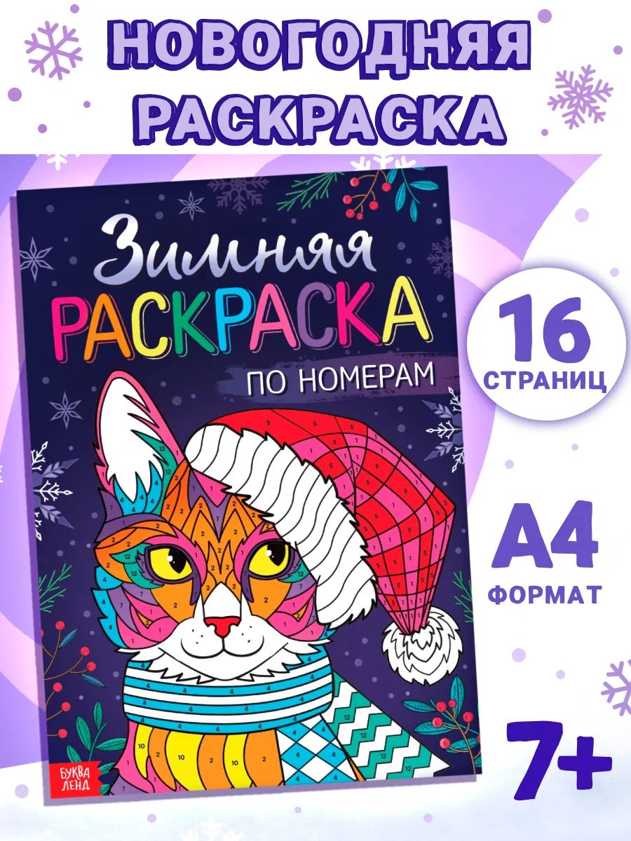 Детская раскраска по номерам, Буква-Ленд, "Зимняя", новогодняя раскраска
