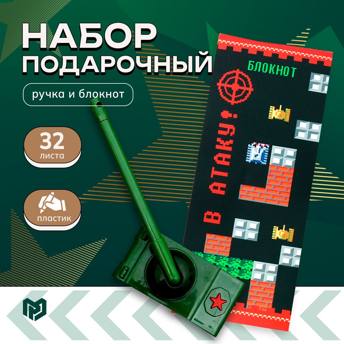 ArtFox Подарочный канцелярский набор для мужчин: ручка шариковая и блокнот, 32 листа, подарок на 23 Февраля