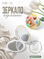 Зеркало складное "Бабочки", d - 7,5 см, рисунок разноцветный