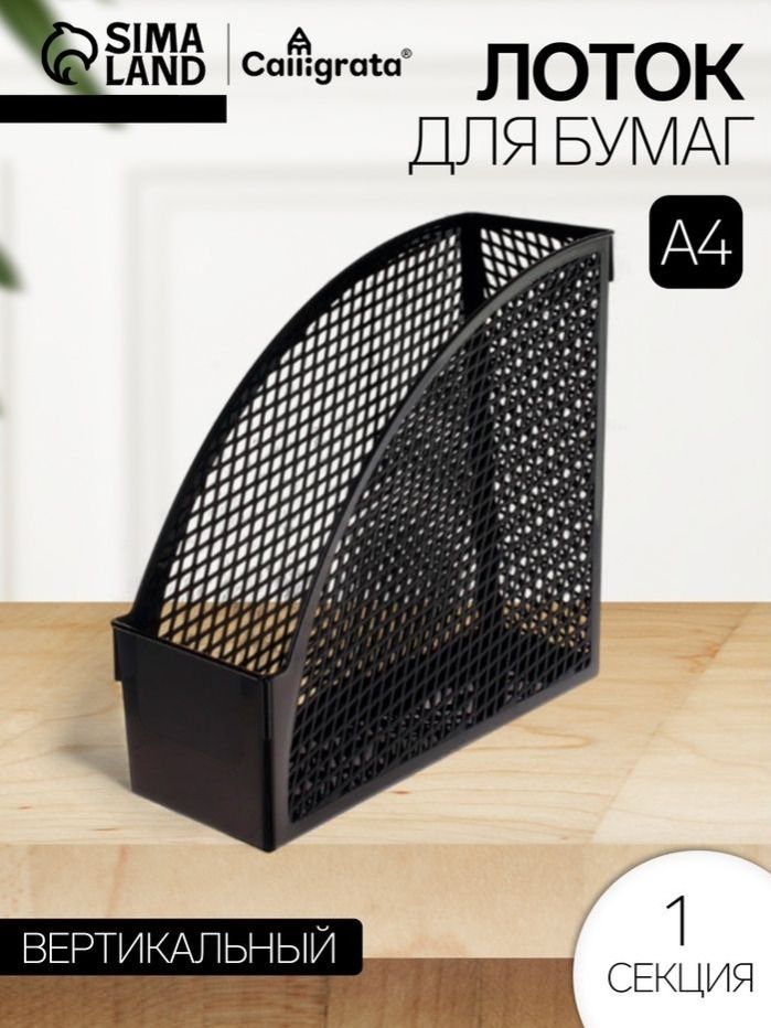 Подставка для канцелярских мелочей 4 отделения, чёрная, сетка