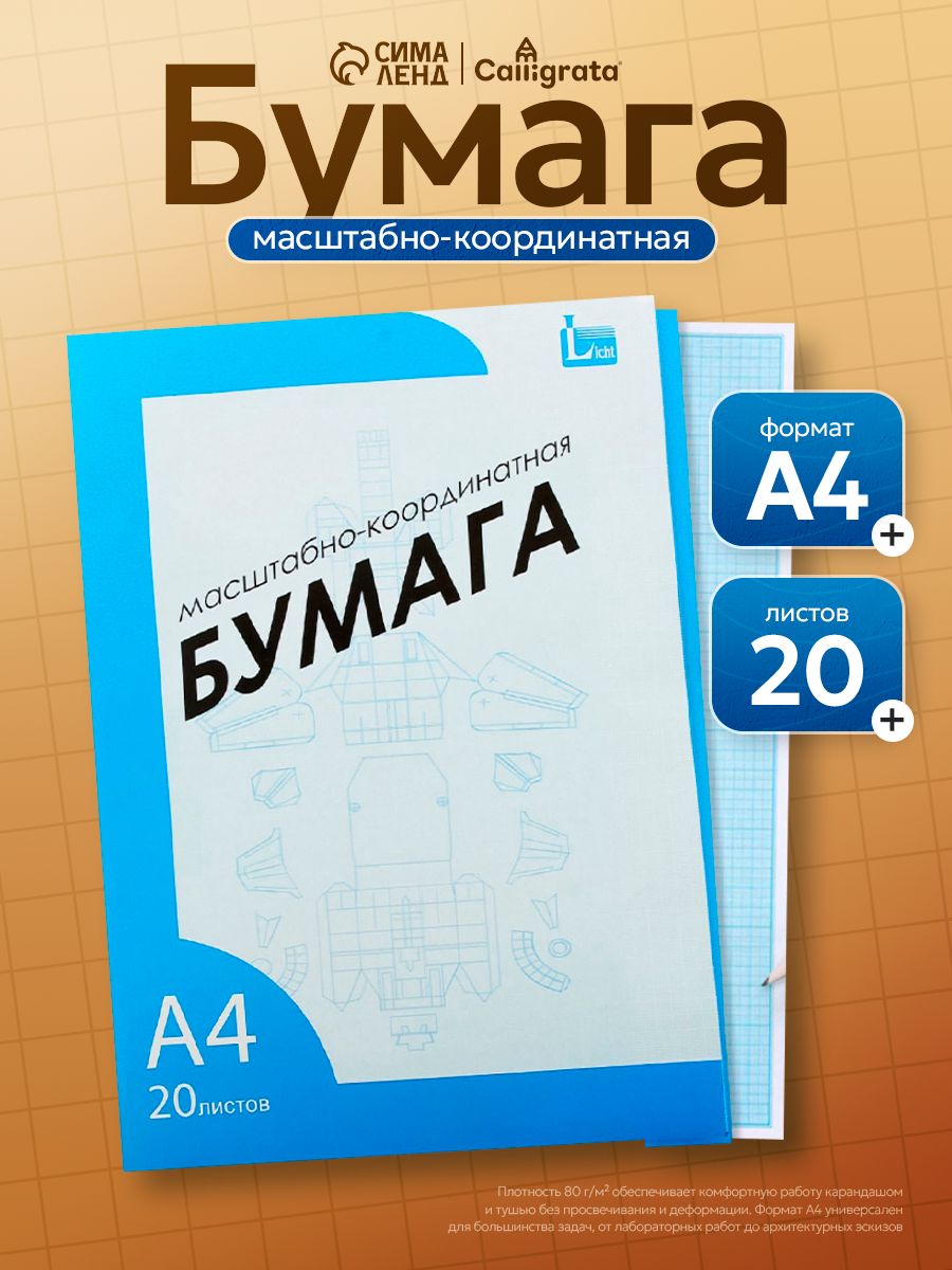 Бумага для графиков и черчения, масштабно-координатная, А4, 20 листов