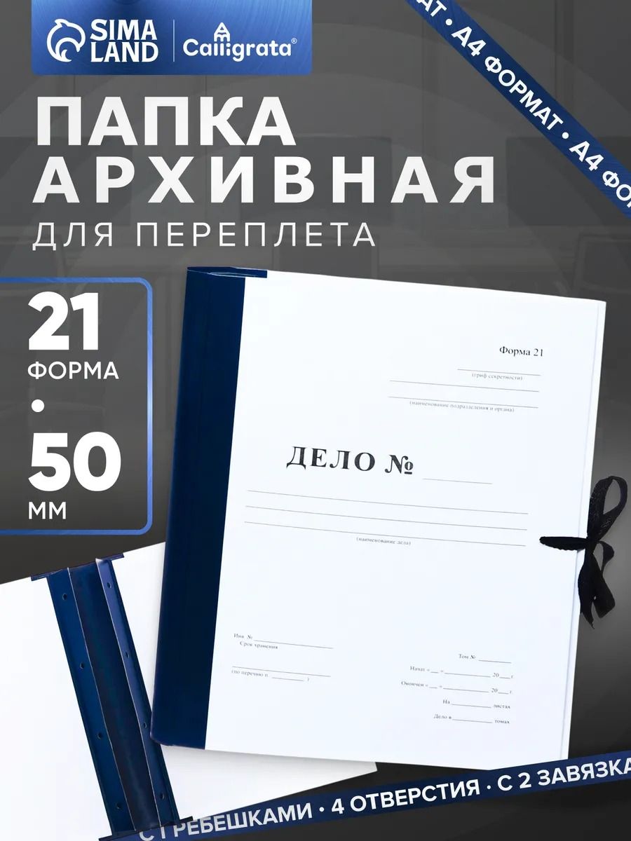 Папка архивная для переплета Calligrata Форма 21 , с гребешками, 4 отверстия, с 2 завязками, 50 мм