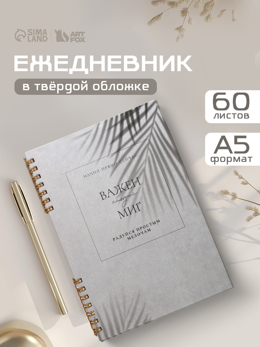 Ежедневник недатированный женский подарочный, твердая обложка, 60 л, А5, подарок