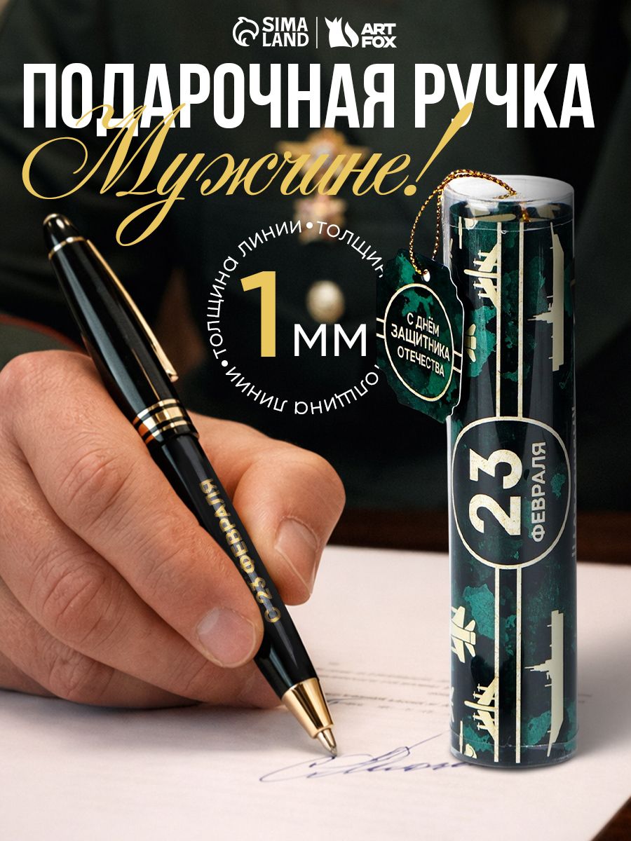 Ручка шариковая синяя подарочная мужчине, в тубусе, подарок на 23 Февраля, 1 шт.