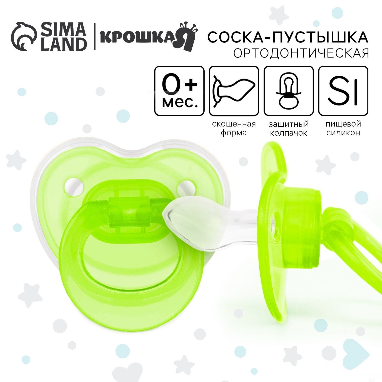 Пустышка для новорожденных 0 / Соска пустышка силиконовая / Ортодонтическая, зеленый, 1 шт