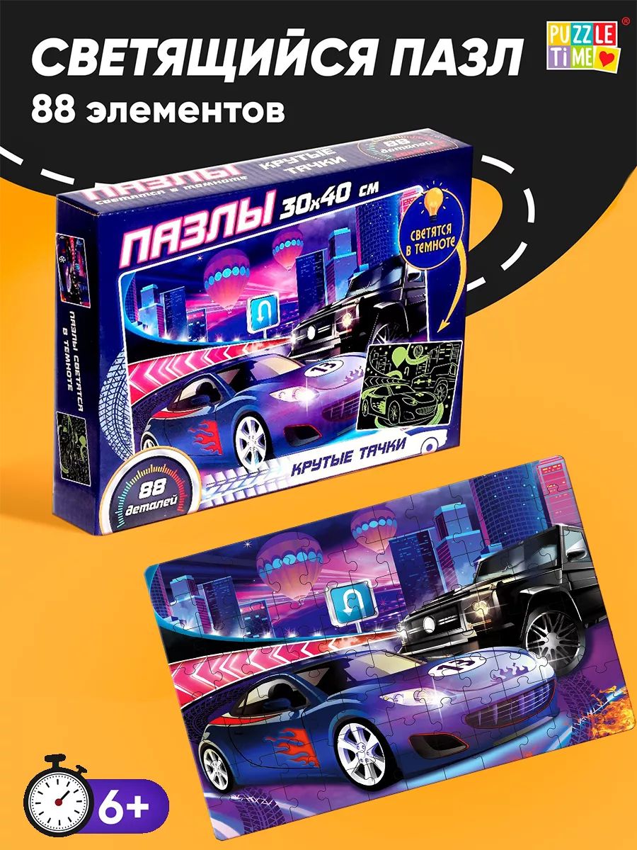 Пазлы для детей, "Крутые тачки", Puzzle Time, 88 элементов, светящиеся пазлы