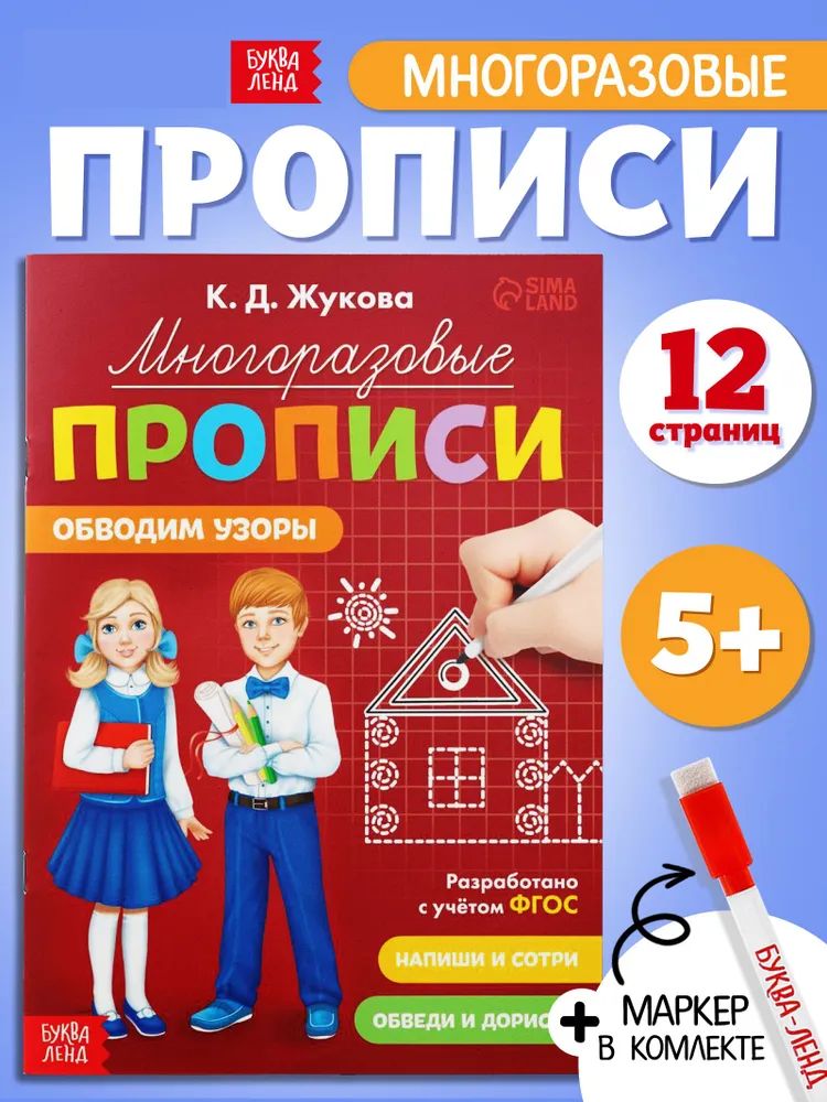 Многоразовые прописи, Буква-Ленд, "Обводим узоры", подготовка к школе, прописи для дошкольников
