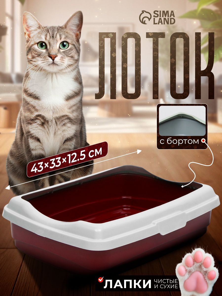 Лоток для кошек большой с бортиком, 43x33x12.5 см, красный