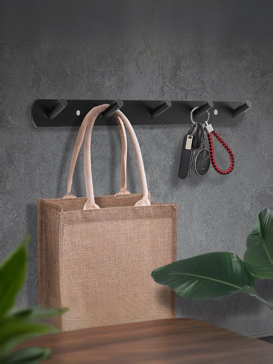 Вешалка настенная для одежды в прихожую, пятирожковая, цвет черный