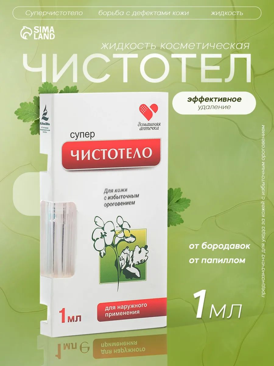 Чистотел "Суперчистотел" Витатека / Жидкость косметическая от бородавок и папиллом, 1 мл