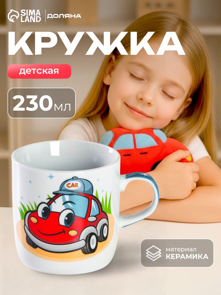 Кружка детская керамическая Доляна "Машинка", объем 230 мл, цвет белый