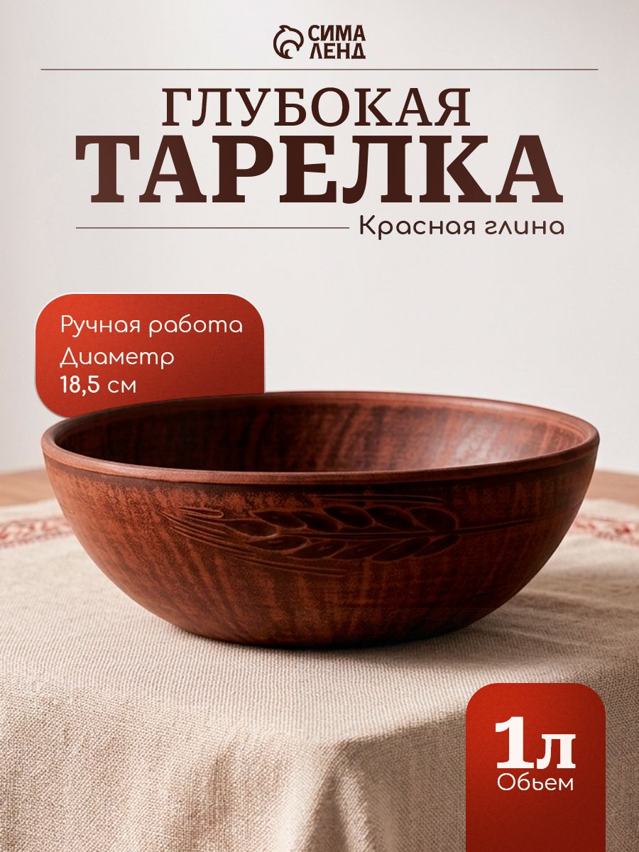 Салатник глубокий 1 л, диаметр 18.5 см Колос, красная глина