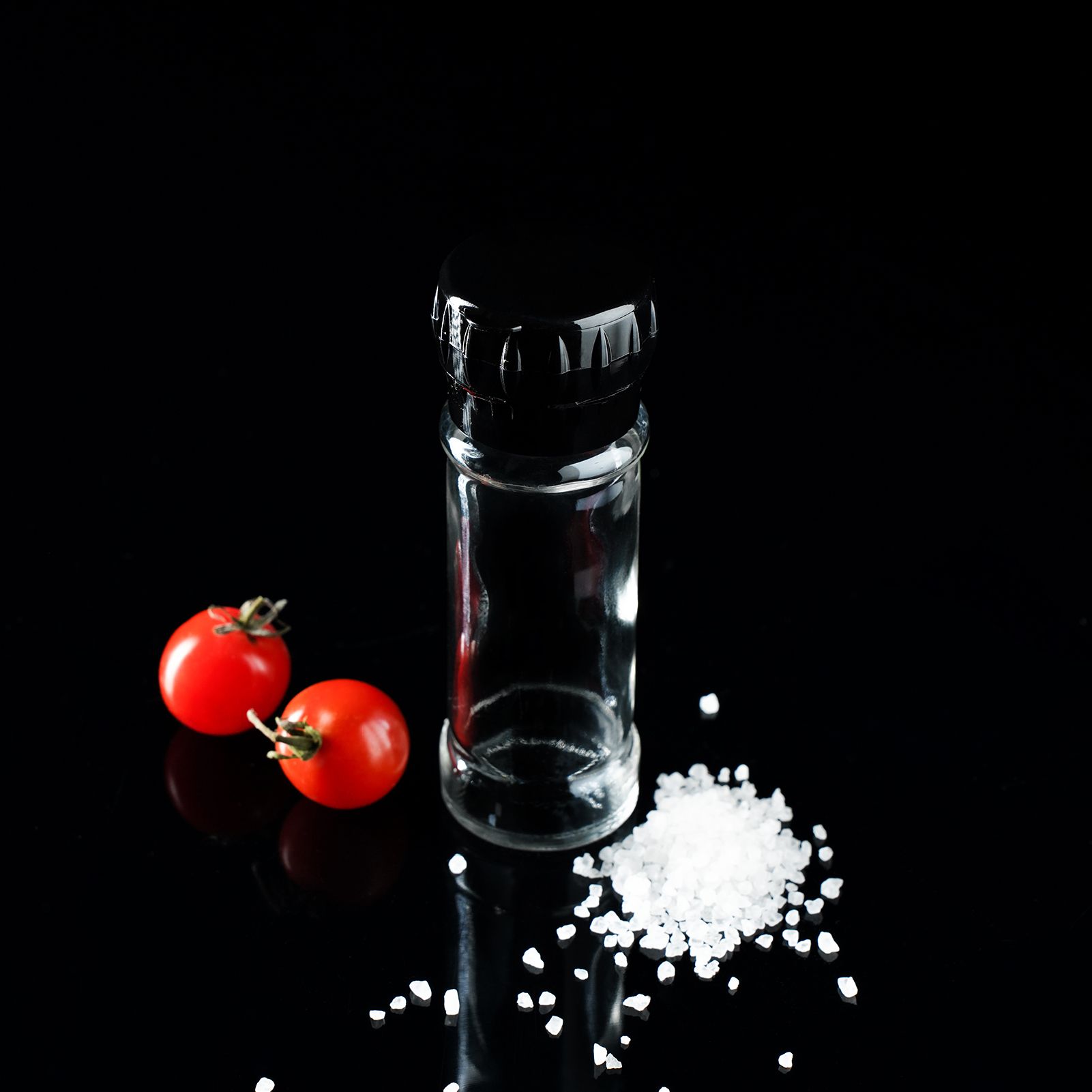 Мельница для специй многоразовая Доляна, объем 115 мл (45-80 гр), стекло, пластик, цвет черный