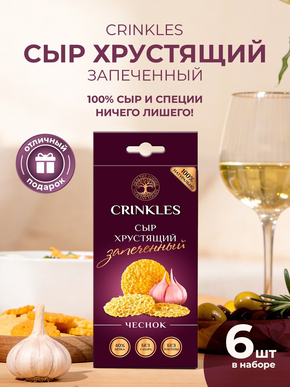 Чипсы Crinkles снеки из сыра хрустящие запеченные чесноком.