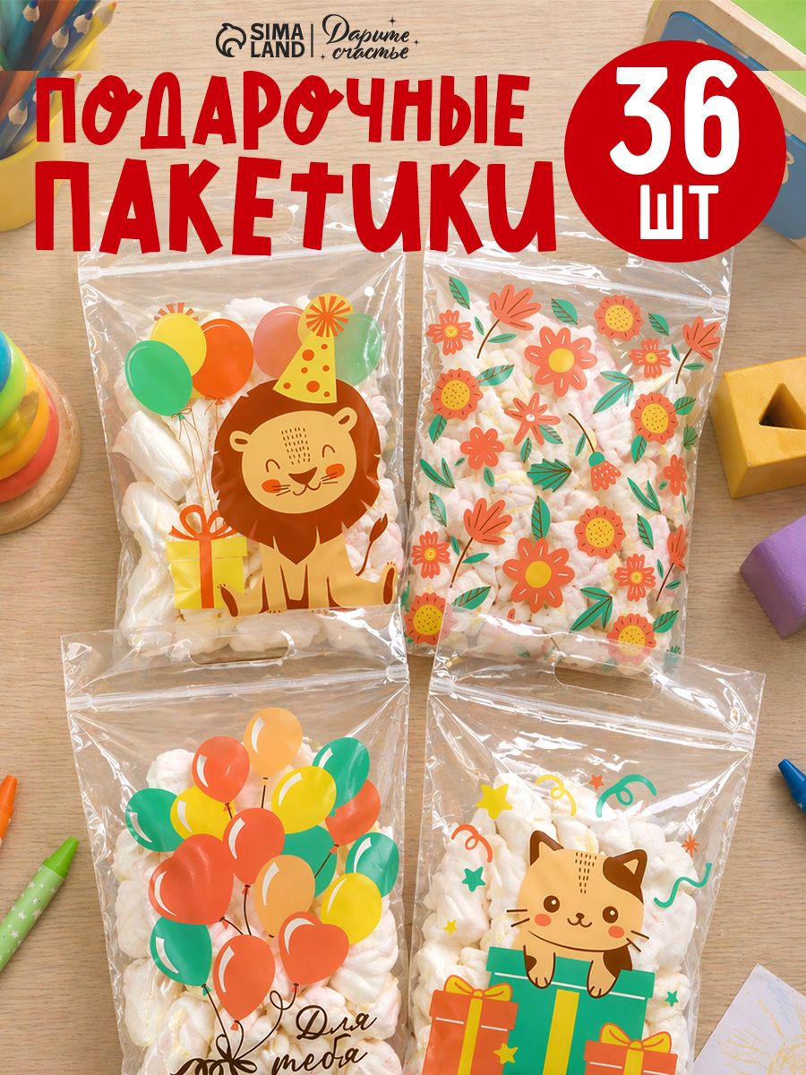 Пакетики для сладостей в детский сад, набор 36 шт, 15 х 25 см
