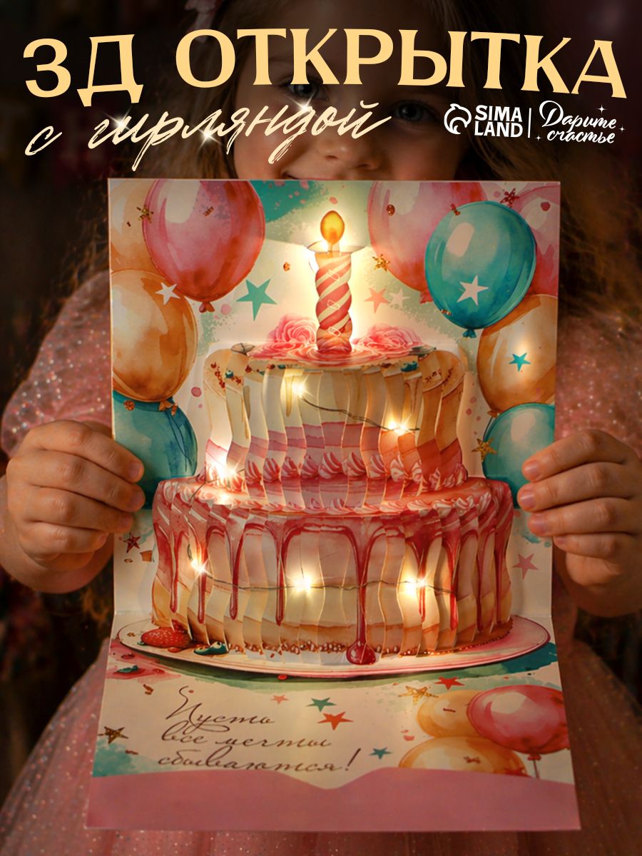 Открытка объёмная 3D, С Днём рождения, 19 х 29 см