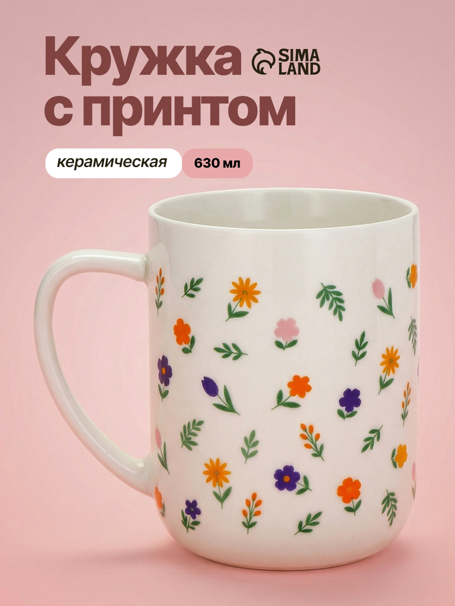 Кружка чайная керамическая Цветы , 630 мл