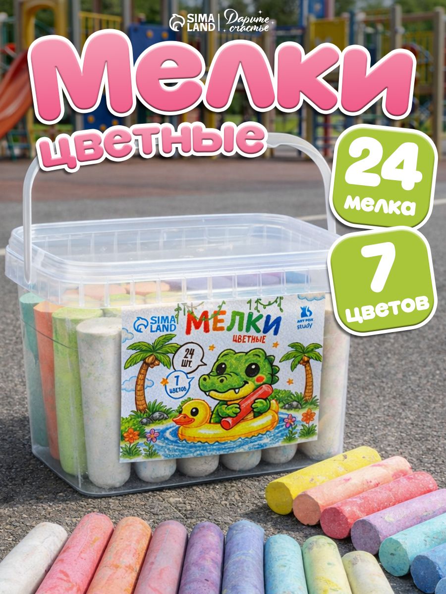 Мел для асфальта цветной, 24 штуки, 7 цветов