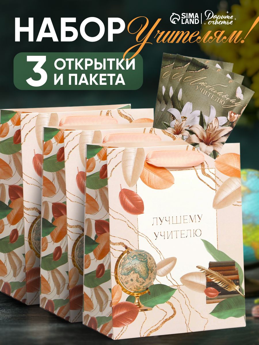Пакеты подарочные на выпускной, учителю, набор 3 шт, с открыткой 18 х 23 х 10 см