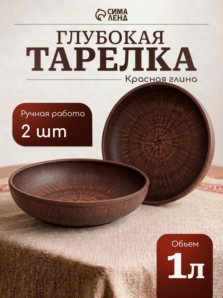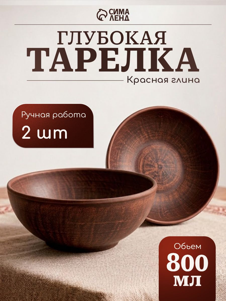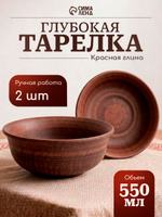 Тарелки глубокие, объем 550 мл, набор 2 шт, салатники, диаметр 16 см, красная глина