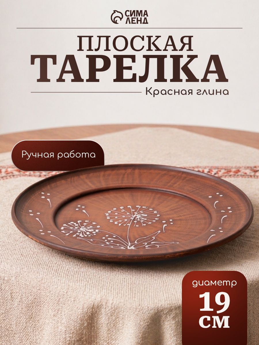 Тарелка сервировочная, диаметр 19 см, красная глина "Одуванчик"