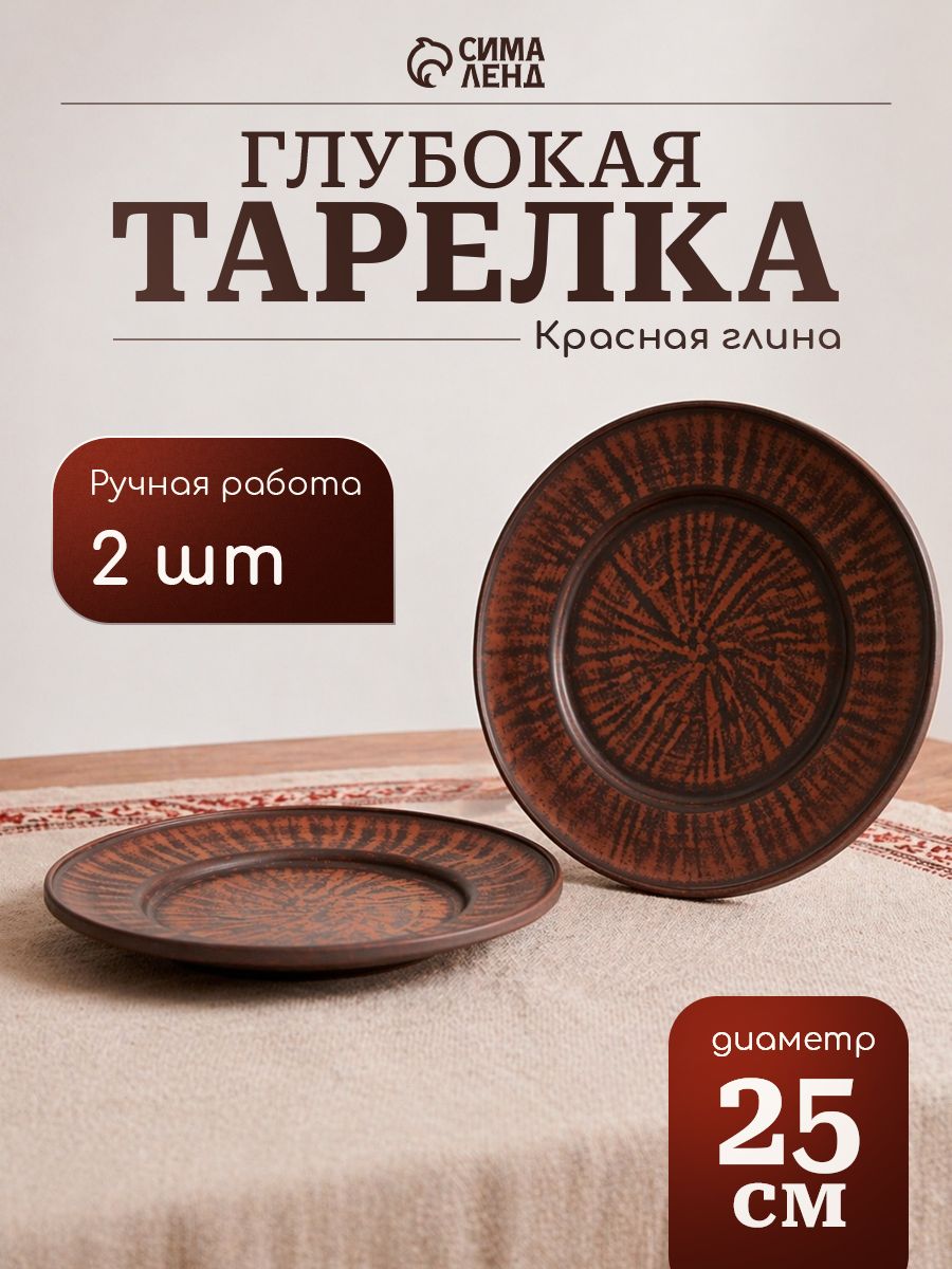 Тарелки сервировочные, диаметр 25 см, набор 2 шт, красная глина "Гладкий"