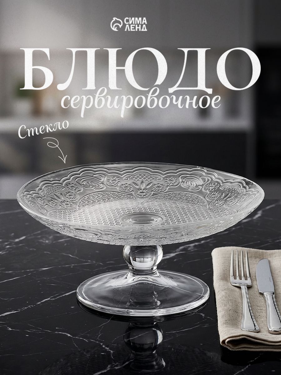 Подставка для торта, выпечки, десертов, диаметр 16 см, тортовница стеклянная, столик кондитерский, блюдо для кексов "ЛЕЙСИ"