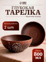 Тарелки глубокие, объем 800 мл, набор 2 шт, салатники, диаметр 20,5 см, красная глина "Одуванчик"