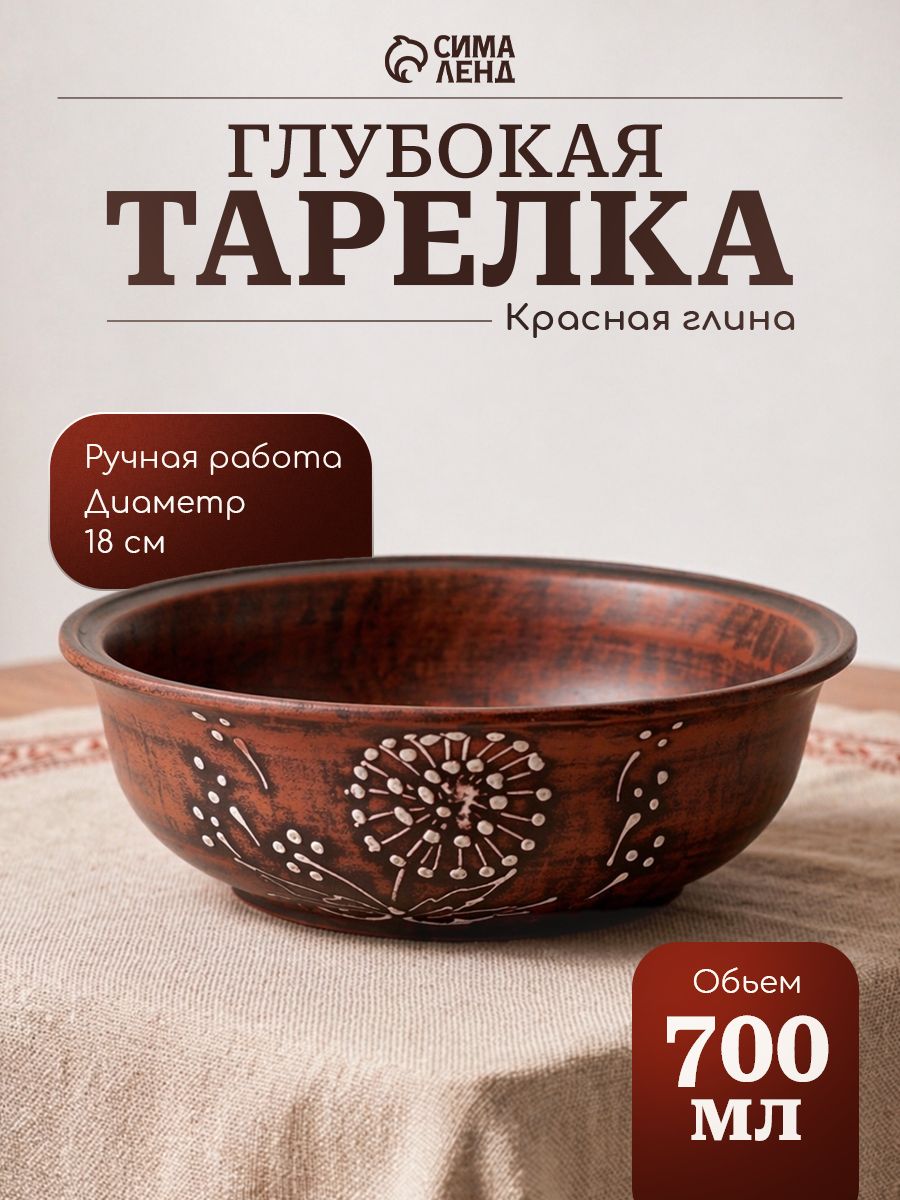 Глубокие тарелки 700 мл, салатник, диаметр 18 см, красная глина "Одуванчик"