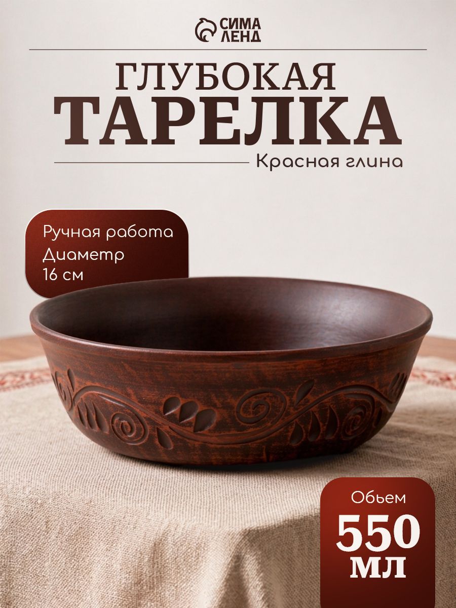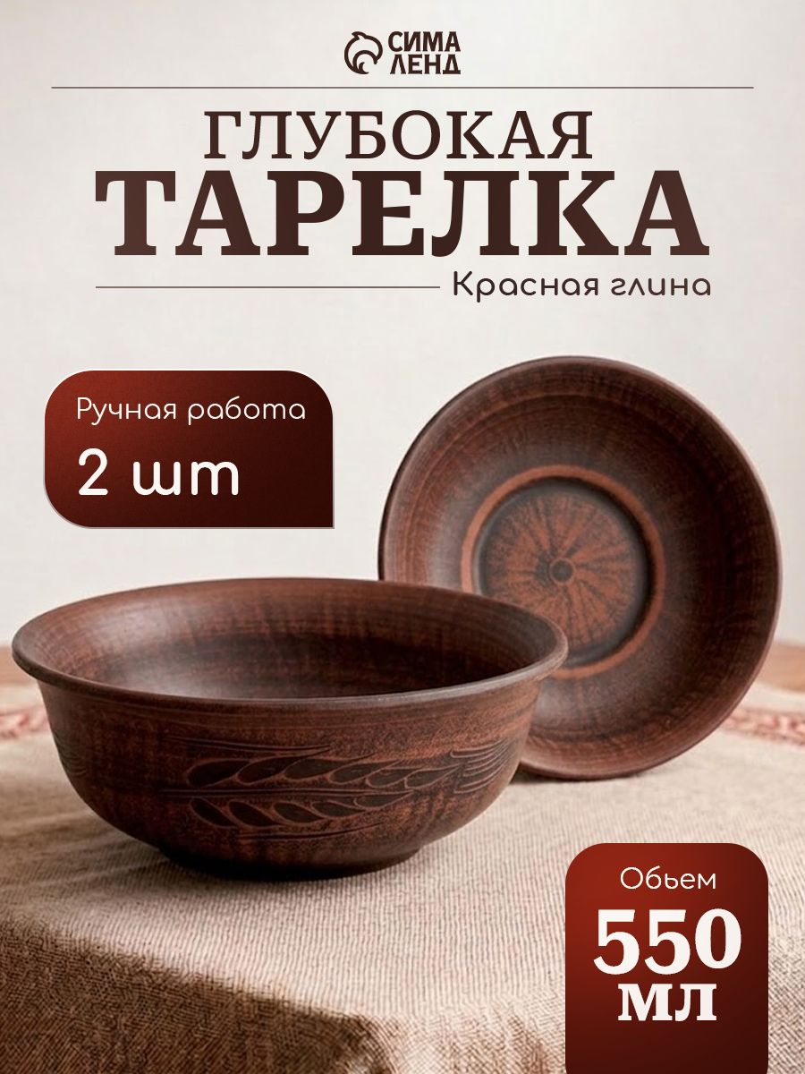 Тарелки глубокие, объем 550 мл, набор 2 шт, салатники, диаметр 16 см, красная глина "Колос"