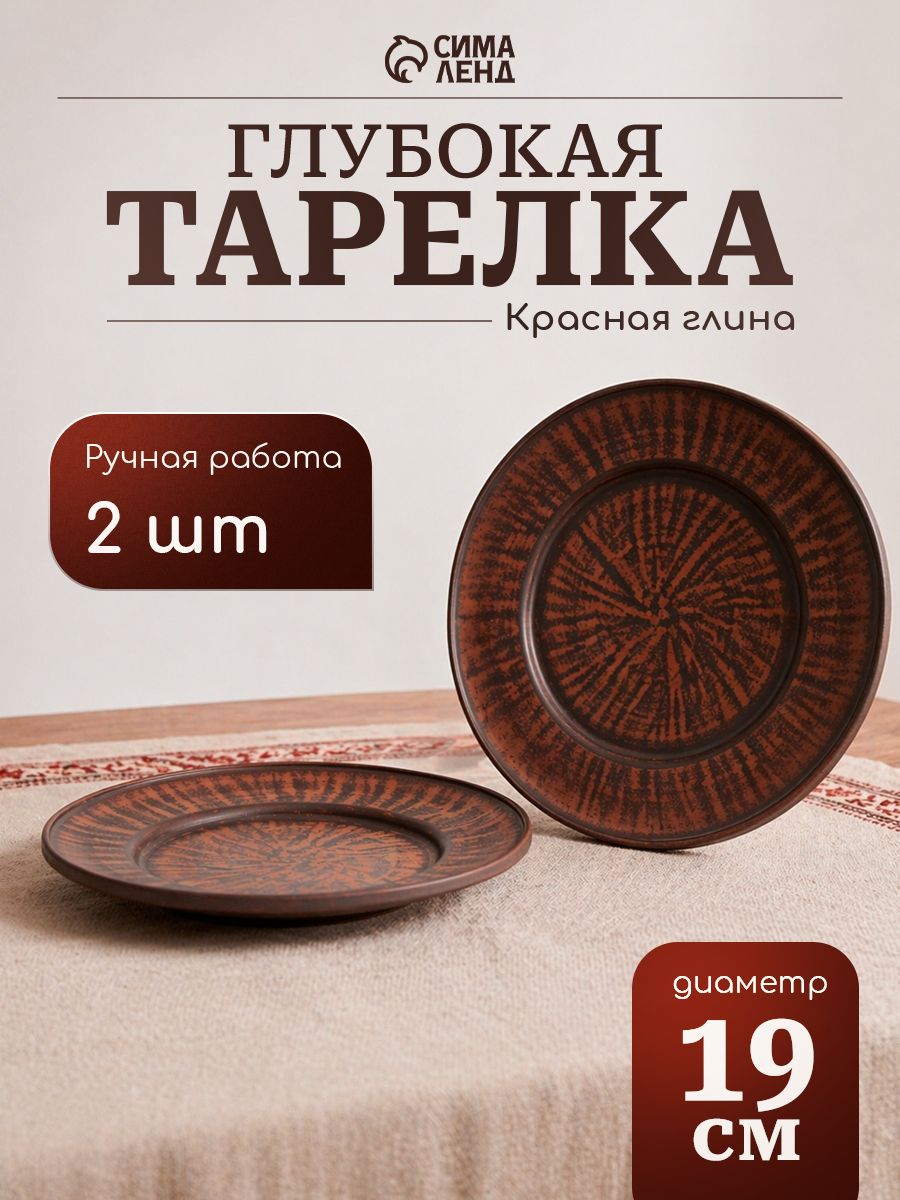 Тарелки сервировочные, диаметр 19 см, набор 2 шт, красная глина "Гладкий"