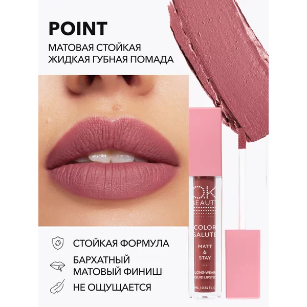 Жидкая матовая помада для губ тон POINT красно-розовый