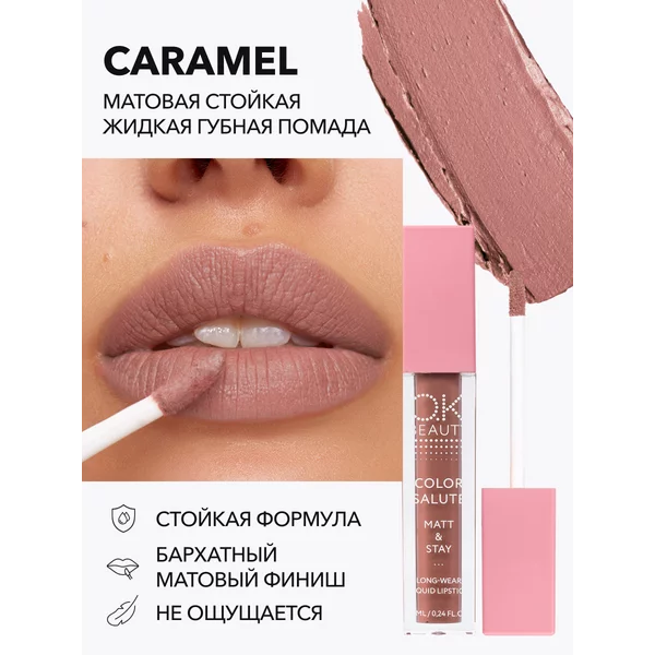Жидкая матовая помада для губ тон CARAMEL карамельный нюд