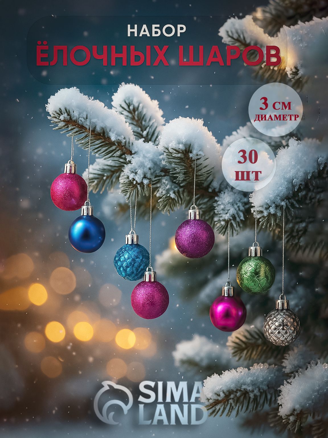 Елочные шары, игрушки на елку, набор из 30 шт, 3 см,