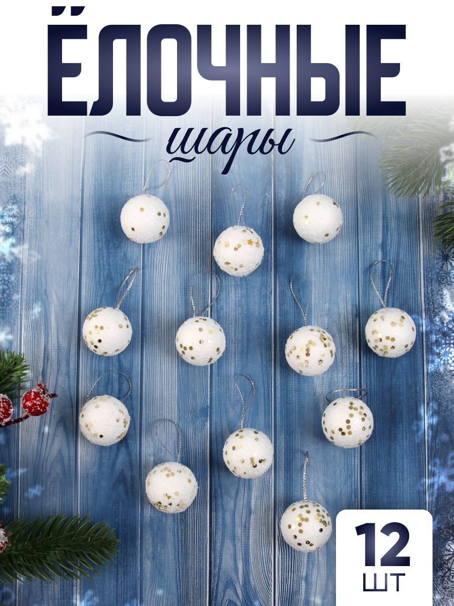 Елочные шары игрушки набор из 12 шт, 3 см, белые / Набор елочных украшений