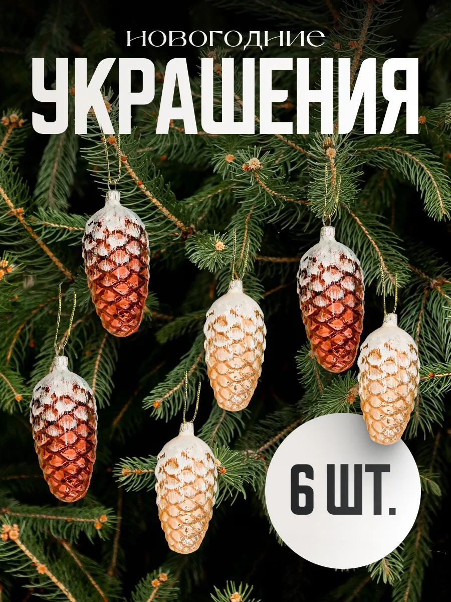 Набор стеклянных елочных игрушек "Шишки сосновые", 6 шт, 9 см