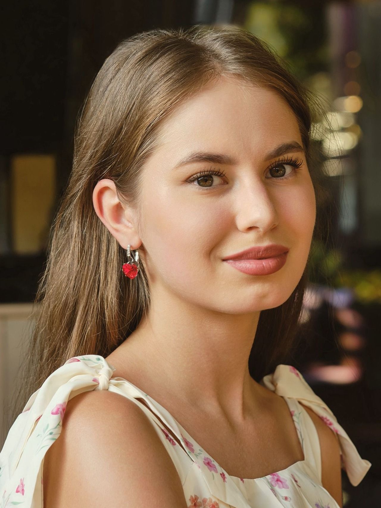 Серьги женские бижутерия со стразами "Сердце" мерцание, цвет бело-красный в серебре