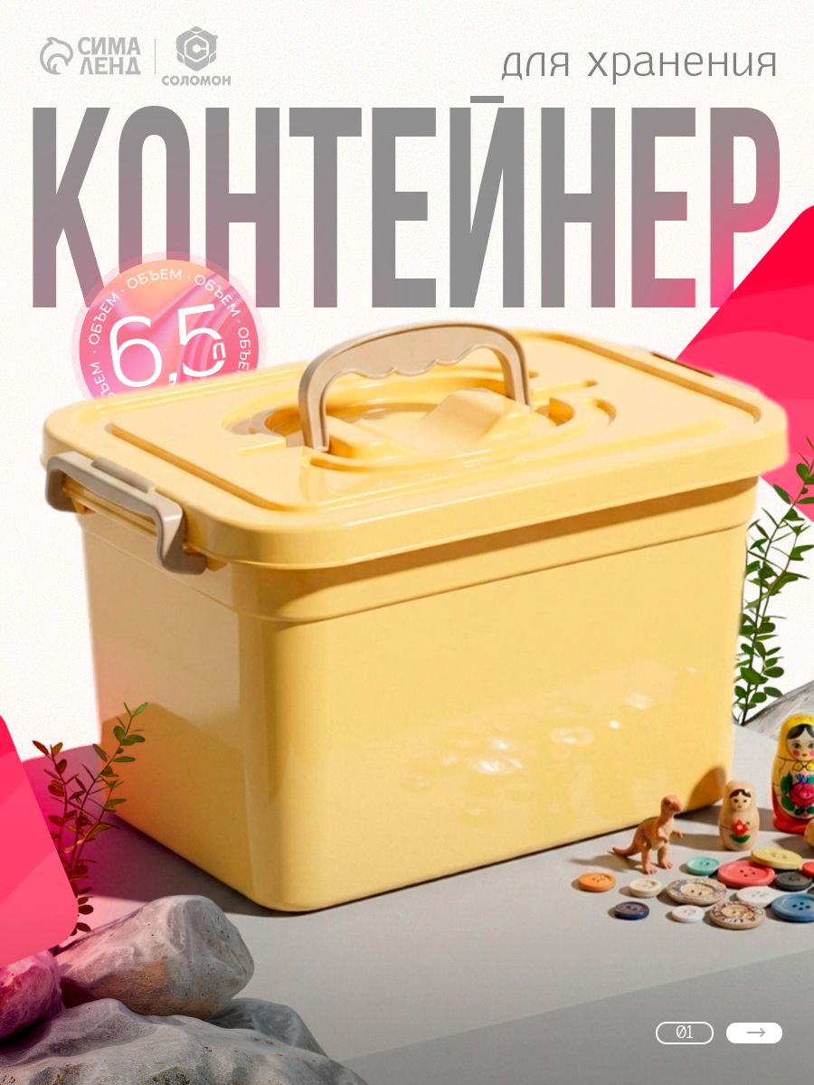 Контейнер для хранения с крышкой, объем 6.5 л, цвет бежевый