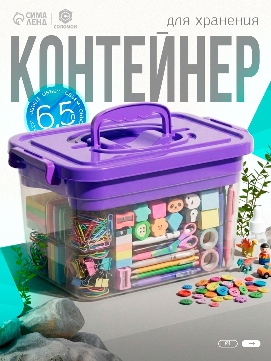 Контейнер для хранения с крышкой, объем 6.5 л, цвет сиреневый