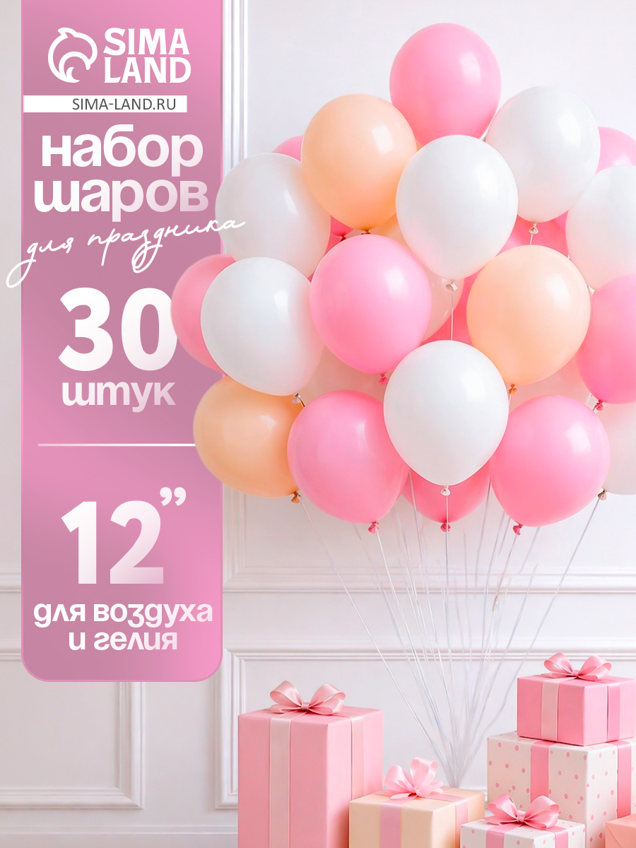 Воздушные шары латексные Нежно-розовые / Набор 30 шт / 12"
