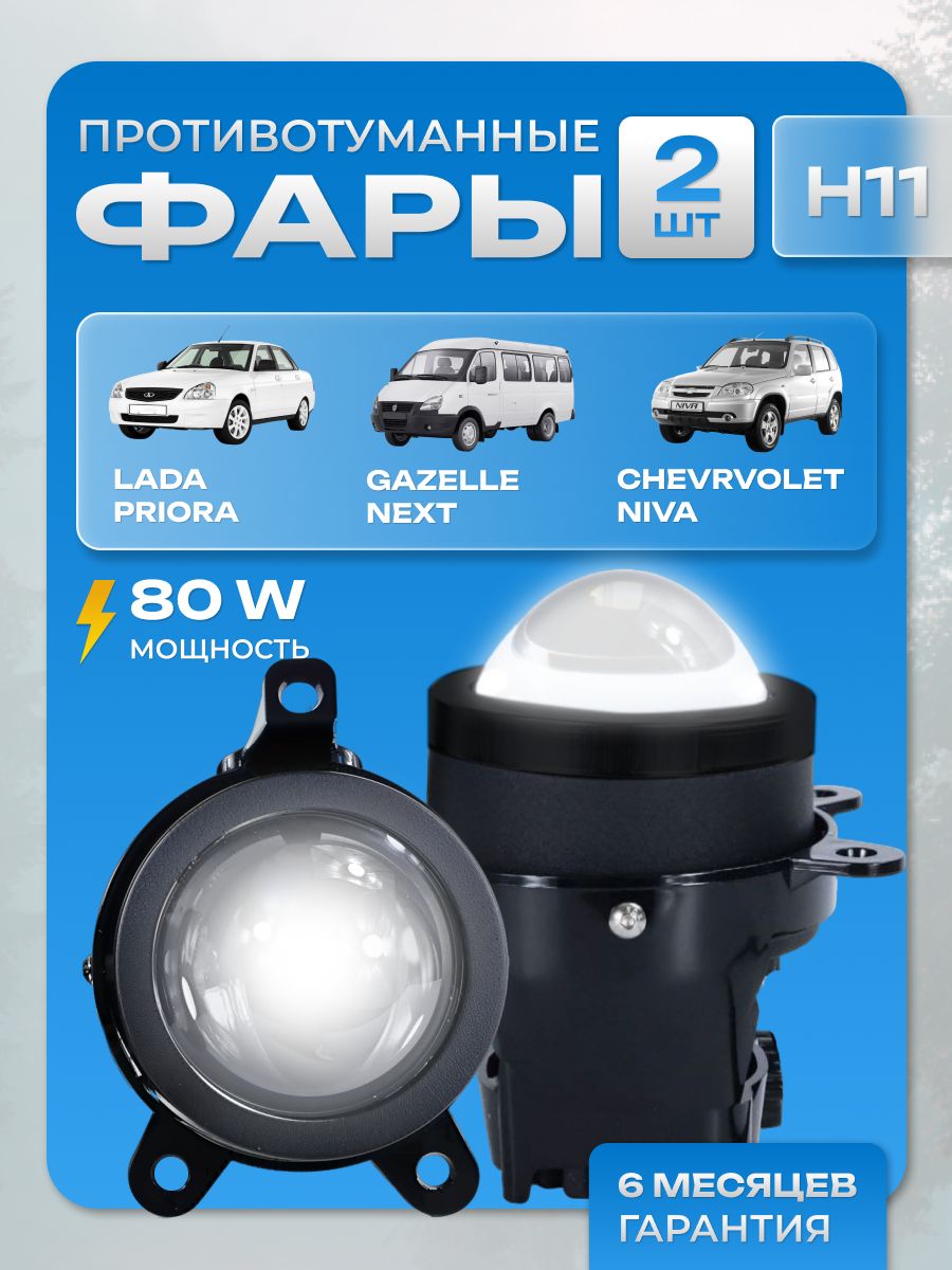 Противотуманные фары светодиодные 12в 24в 32в линзы для Лада Приора передние, Нива Шевроле, Газель - линзованные лазерные птф bi led би лед 3.0 туманки