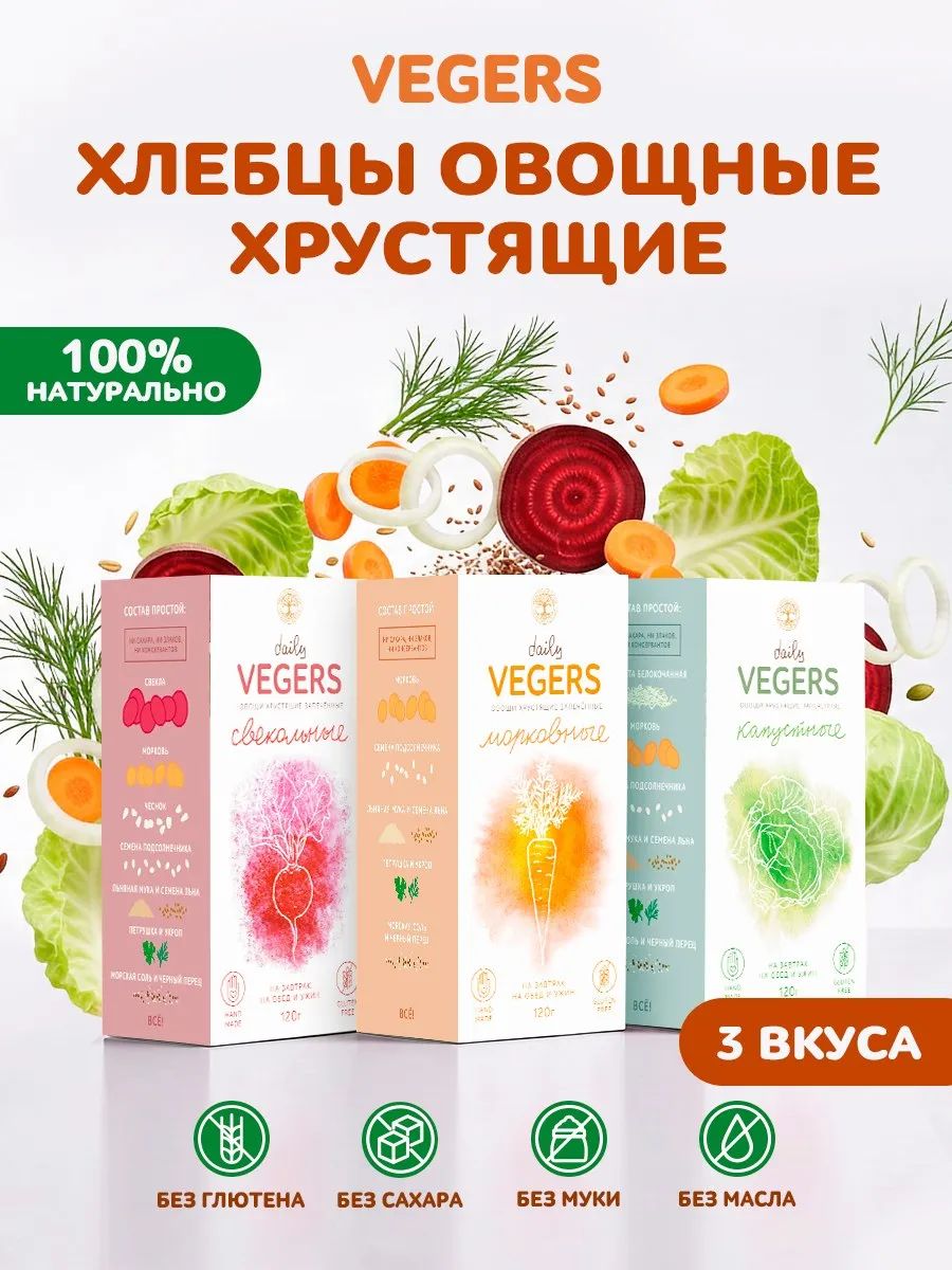 Хлебцы Daily VEGERS без глютена овощные снеки, полезный перекус без сахара, капустные, можно в пост..