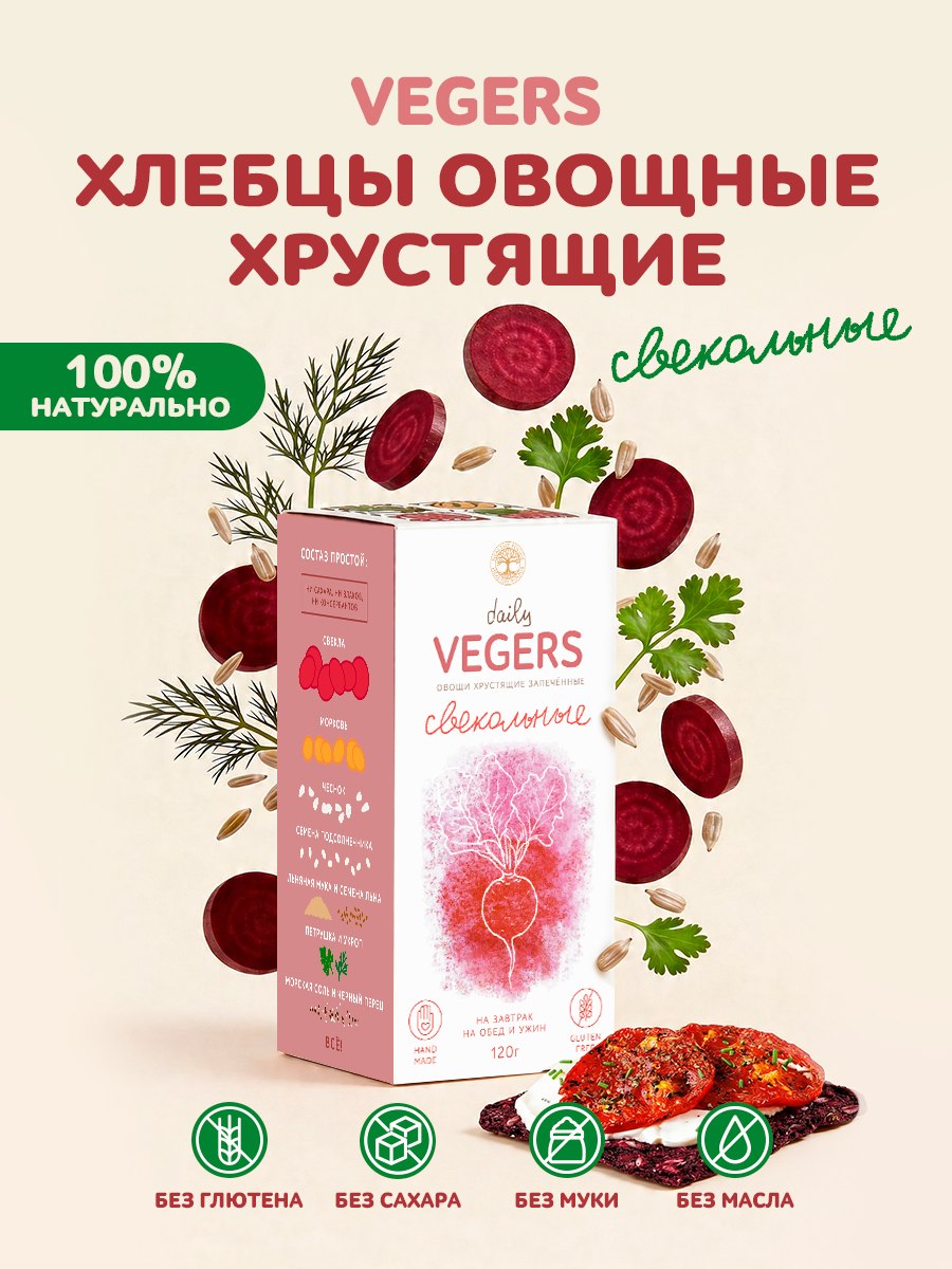 Хлебцы Daily VEGERS без глютена овощные, полезный перекус без сахара, свекольные, можно в пост.