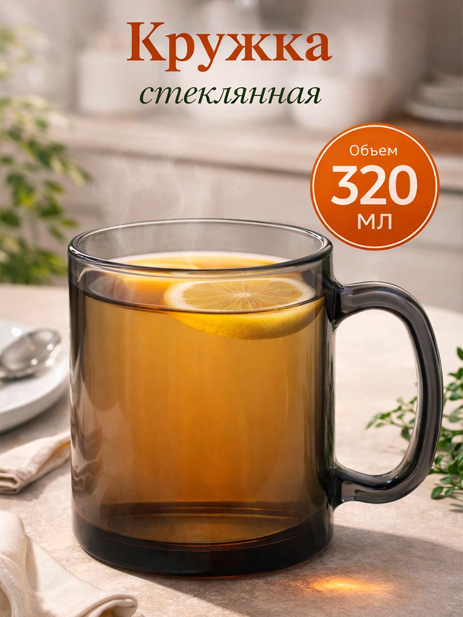 Кружка стеклянная "Чайная", объем 320 мл, графит
