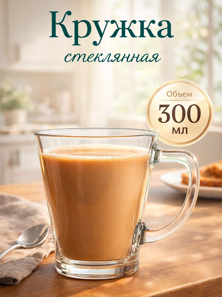 Кружка стеклянная Аура, объем 300 мл, прозрачная