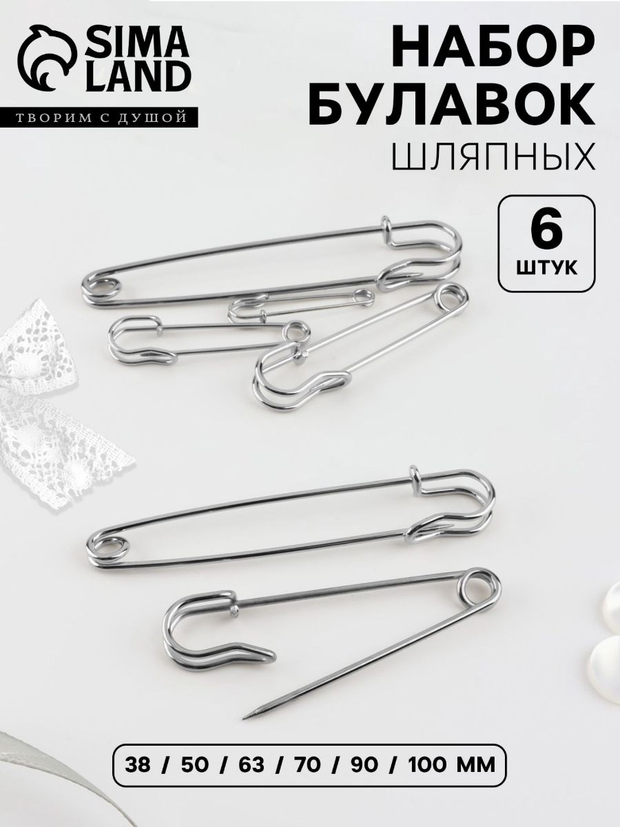 Набор булавок шляпных, 6 шт, цвет серебряный