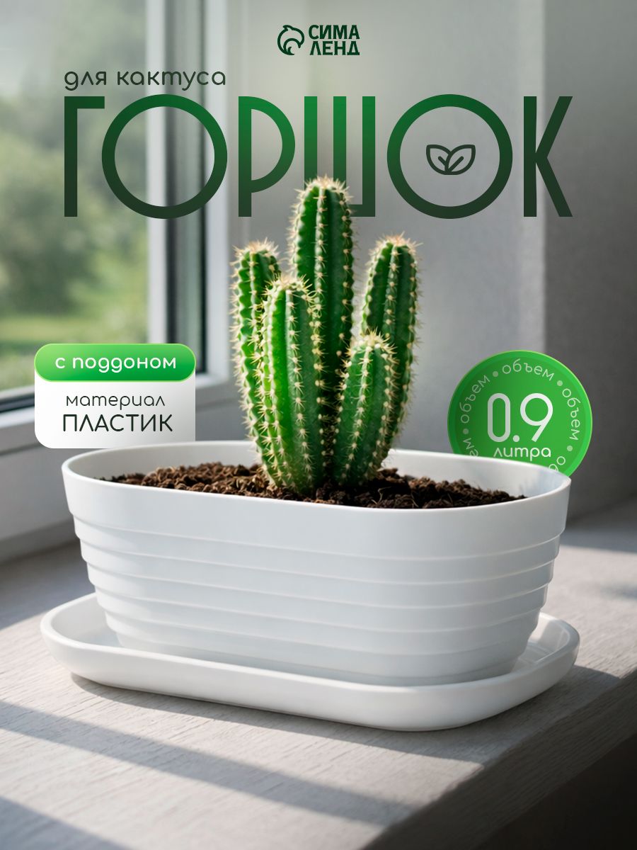 Горшок для цветов, 0,9 л, кашпо уличное, ящик пластиковый, для суккулентов и кактусов, с поддоном